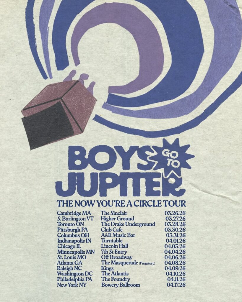 Continue below to view Boys Go To Jupiter’s 2026 The Now You’re A Circle Tour poster and official tour schedule.