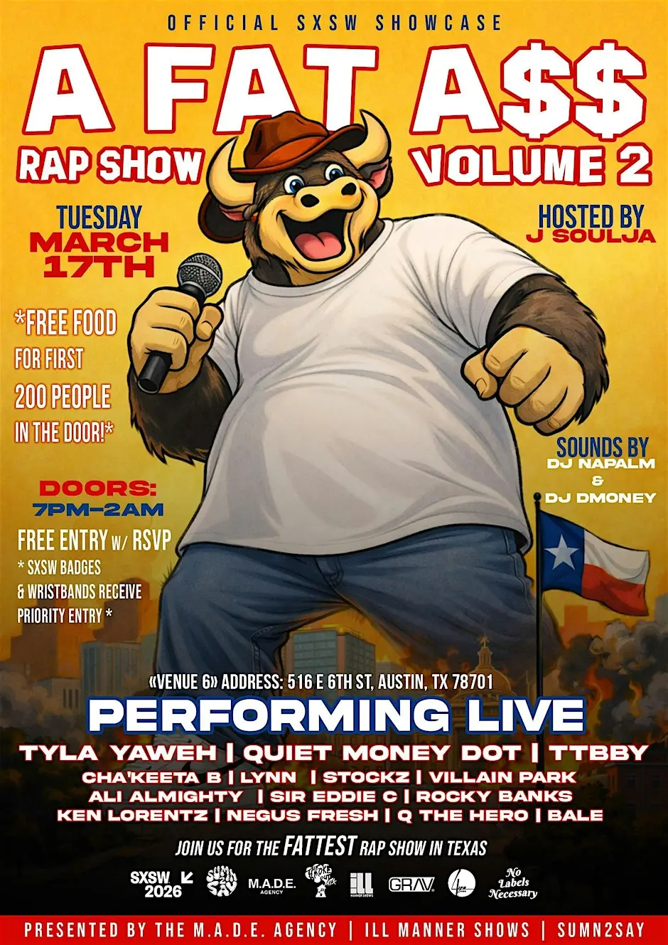 Performers: Tyla Yaweh, Quiet Money Dot, TTBBY, Cha’keeta B, Lynn, Stockz, Villain Park, Ali Almighty, Sir Eddie C, Rocky Banks, Ken Lorentz, Negus Fresh, Q The Hero, Bale