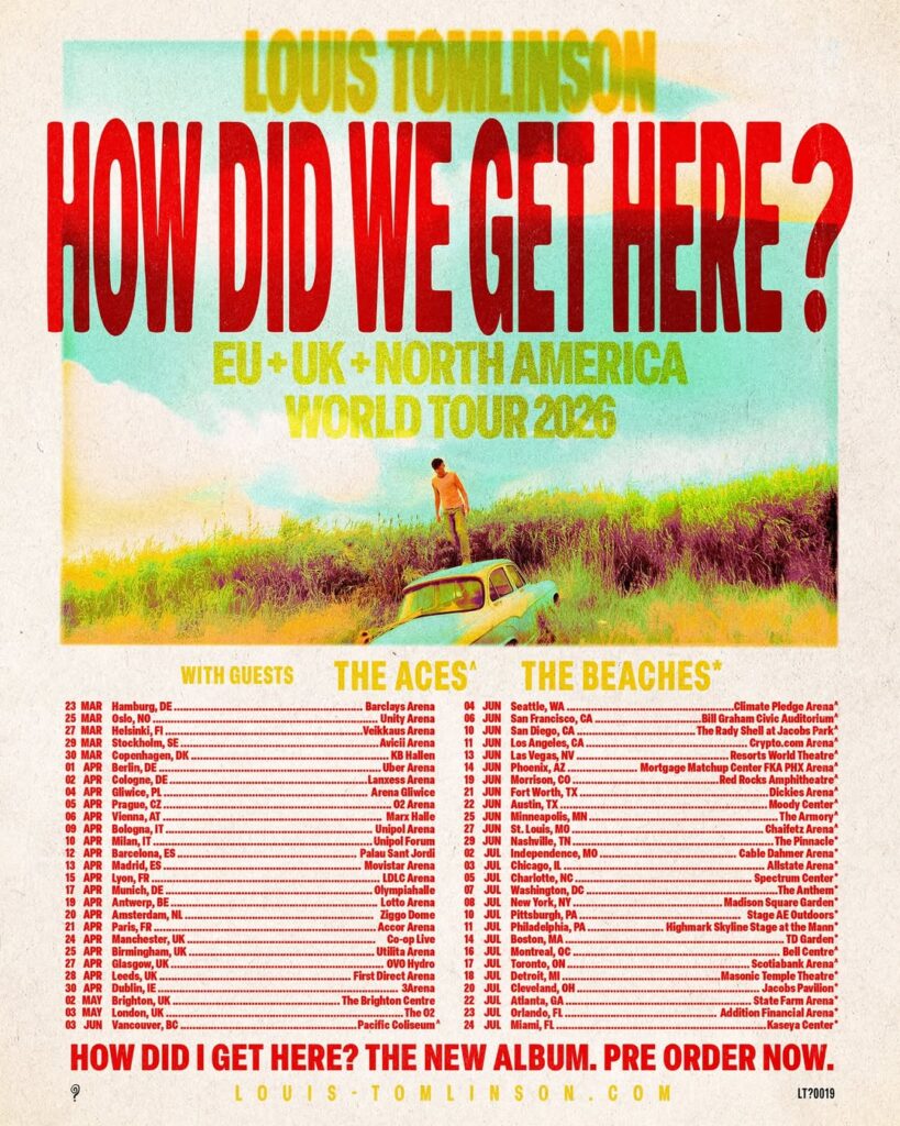 The North America leg will begin when Tomlinson touches Vancouver, British Columbia’s Pacific Coliseum stage on June 3. Across the tour, Pale Waves, The Aces, and The Beaches will serve as supporting acts.