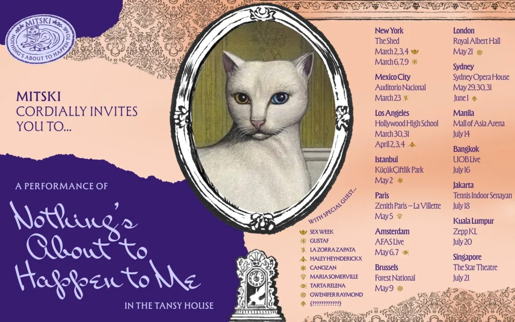 On March 3, Mitski will hit the road for the Nothing’s About To Happen To Me Tour. Along the run, Mitski will be joined by Sex Week, Gustaf, La Zorra Zapata, Haley Heynderickx, Canozan, Maria Somerville, Tarta Relena, and Gwenifer Raymond on select dates. Continue below to view the full Nothing’s About To Happen To Me Tour date schedule and official poster.